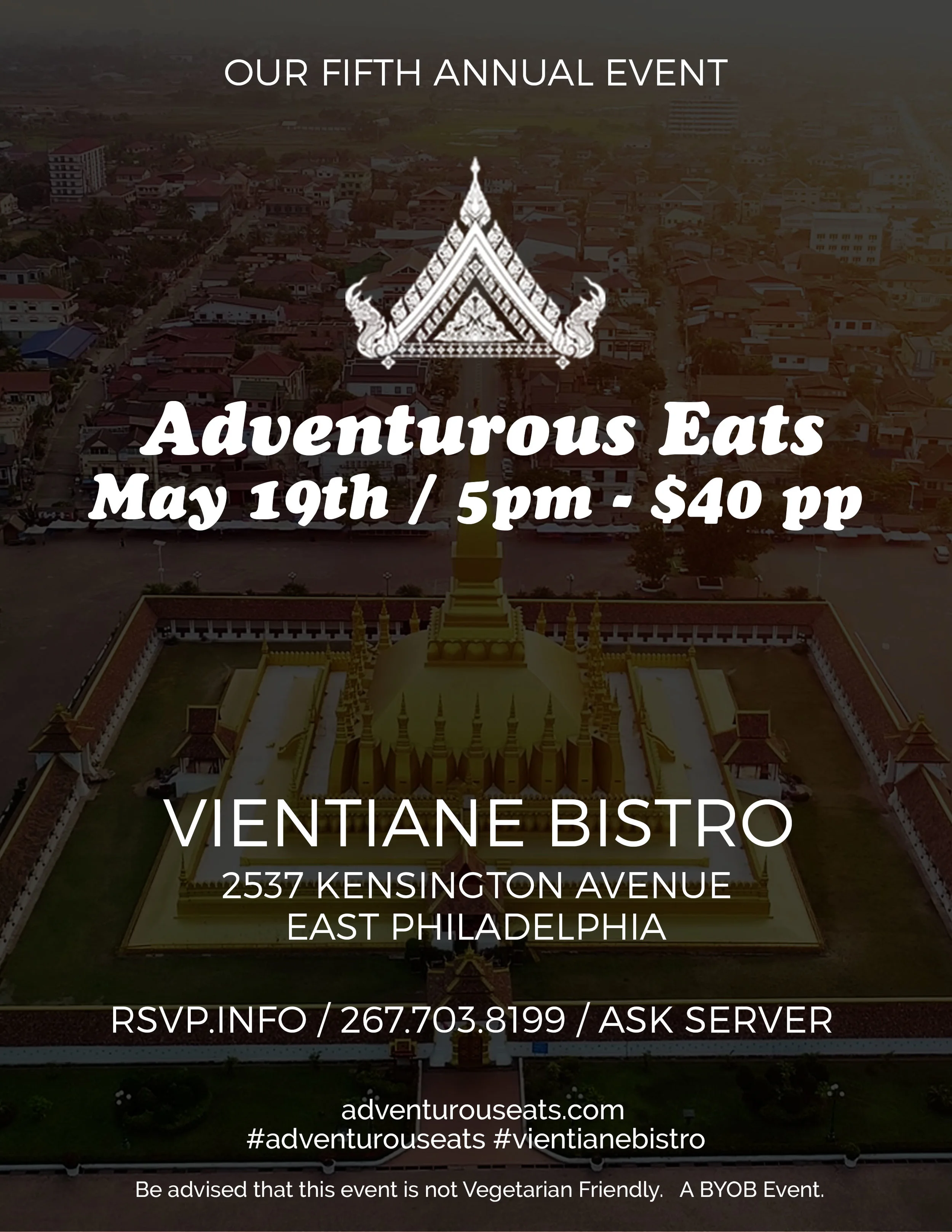 VIENTIANE BISTRO (map) 2537 Kensington Avenue PHILADELPHIA, PA 19125 United States ✚ gCal ✚ iCal $40 PER PERSON PLEASE CALL 267-703-8199 FOR FURTHER DETAILSBYOB